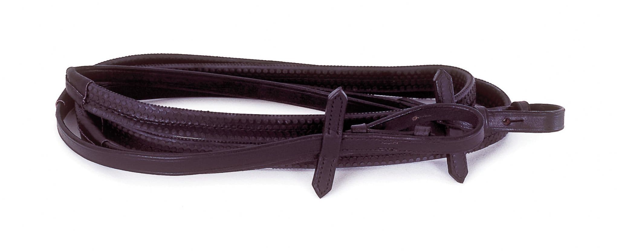 DESCRIPTIONChild length rubber covered reins made from English leather.